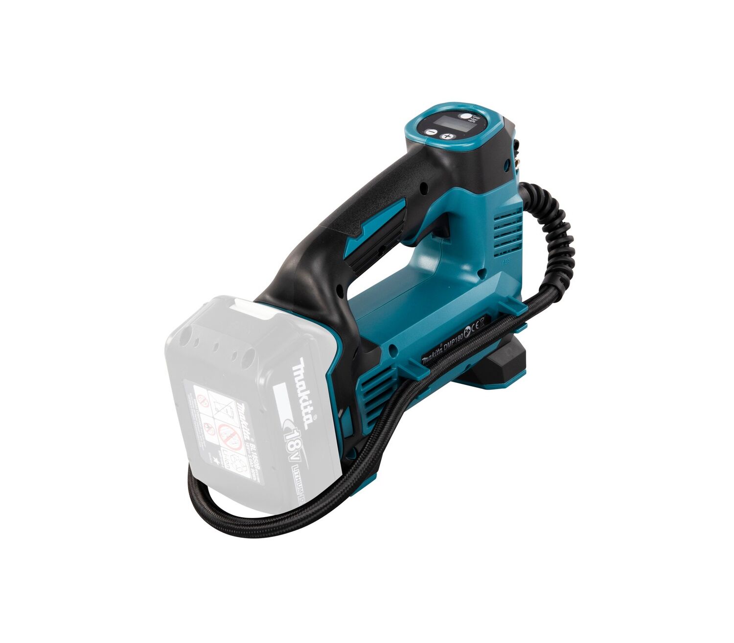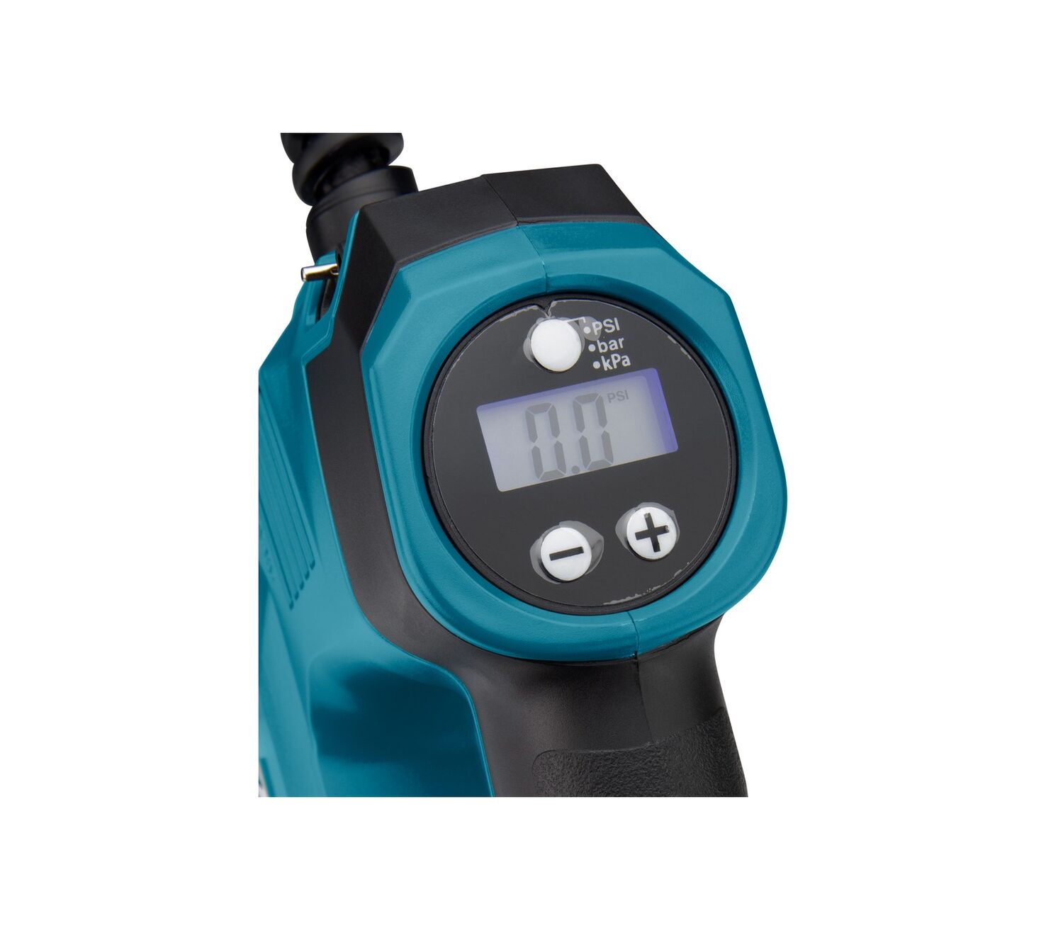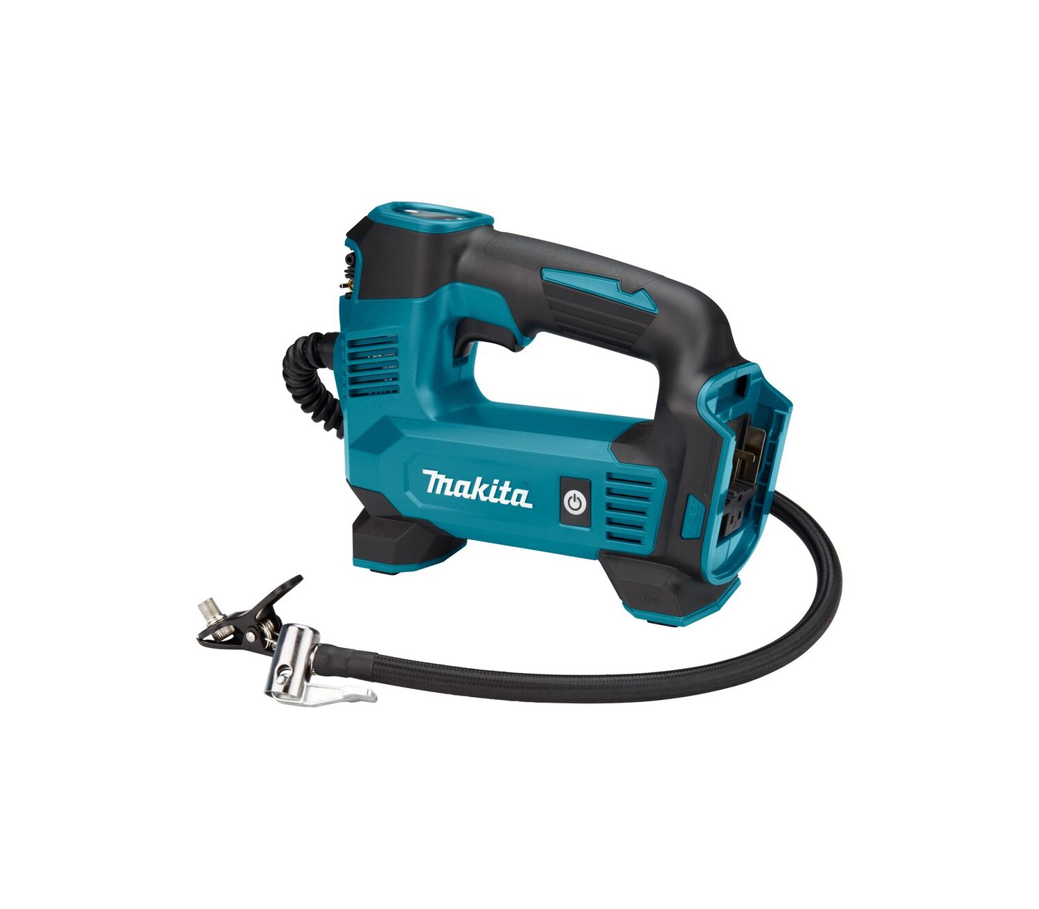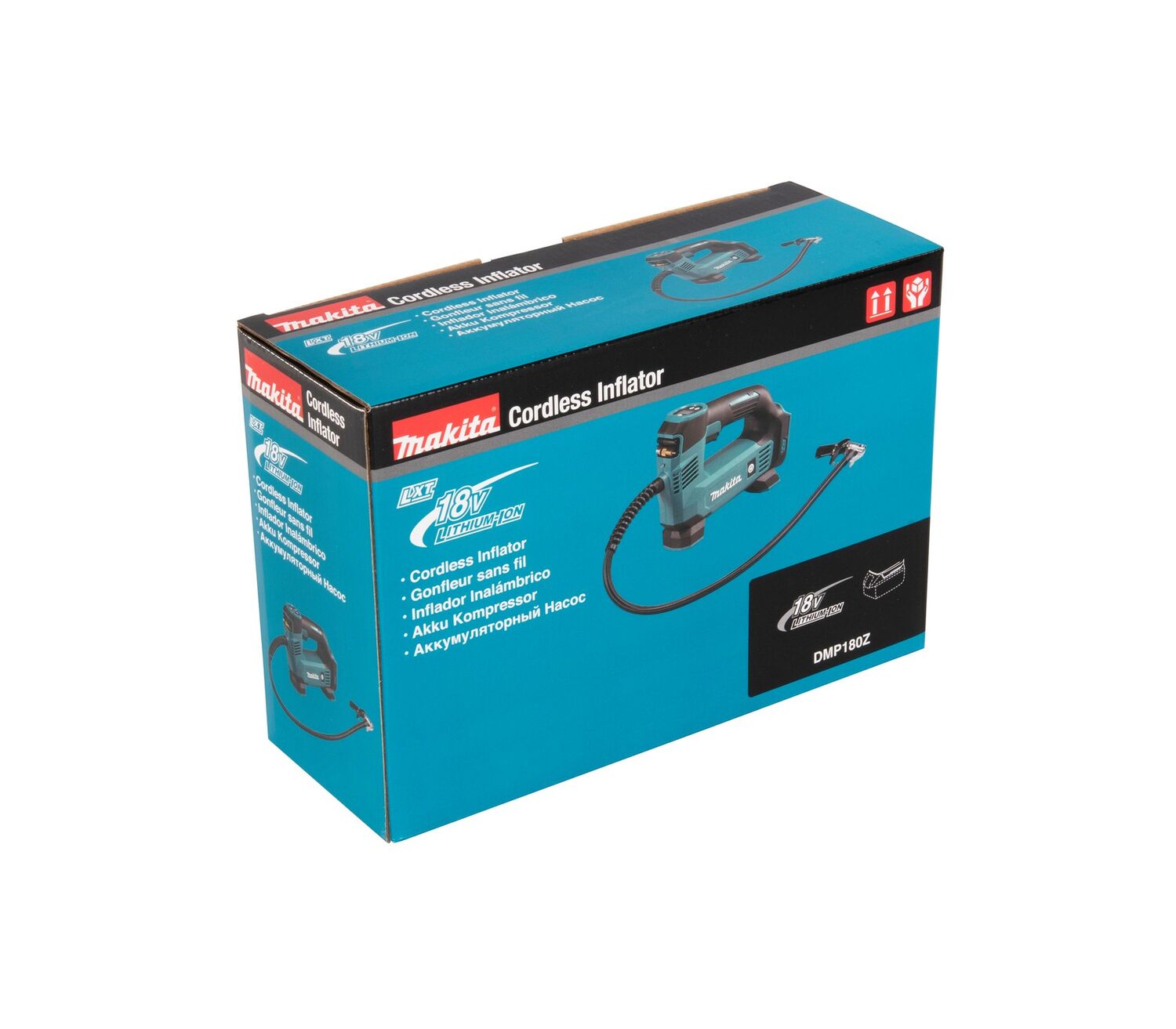 Luftpump max 8,3 Bar Makita 18V LXT DMP180Z är en sladdlös pump som drivs av ett 18V Li-Ion batteri. Smidig och praktisk i depån för att pumpa gokartdäck, eller för motorcykel- och bildäck, bollar, badleksaker mm. Luftpumpen har en bakbelyst digital display där användaren väljer önskat tryck. När trycket är uppnått slutar kompressorn automatiskt att pumpa. Utrustad med LED-belysning för att underlätta arbete i svagt ljus.