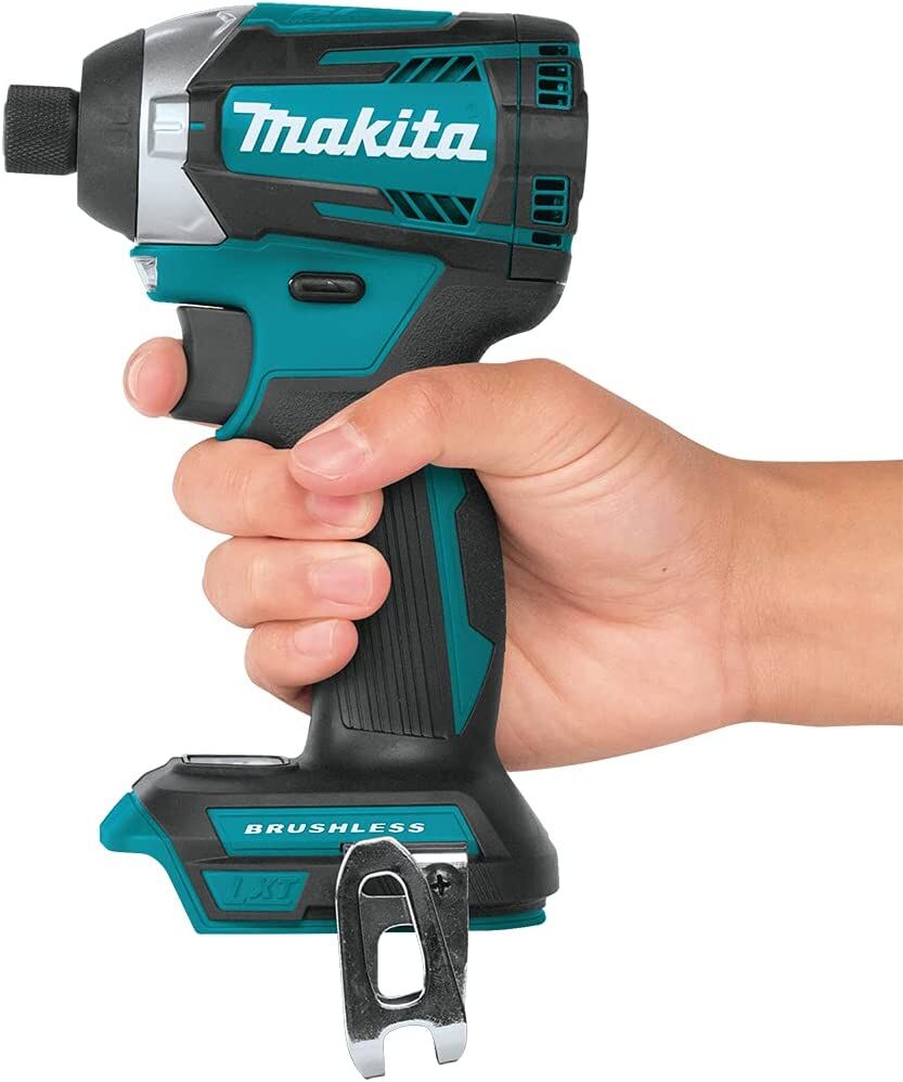 Slagskruvdragare med 1/4" bitsfäste Makita 18V LXT DTD154Z. Smidig kolborstfri 18V slagskruvdragare, endast 117 mm lång. 3-stegs slageffektsval. Högt max vridmoment på 175 Nm samt ett varvtal på 3600 rpm. XPT, förbättrad resistens mot damm- och vattenstänk. Maskinen är utrustad med dubbel LED-belysning.