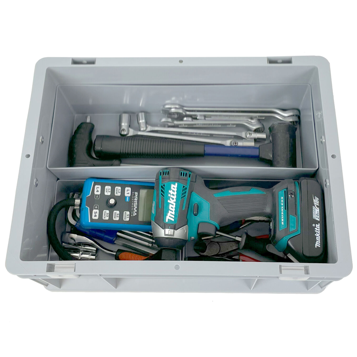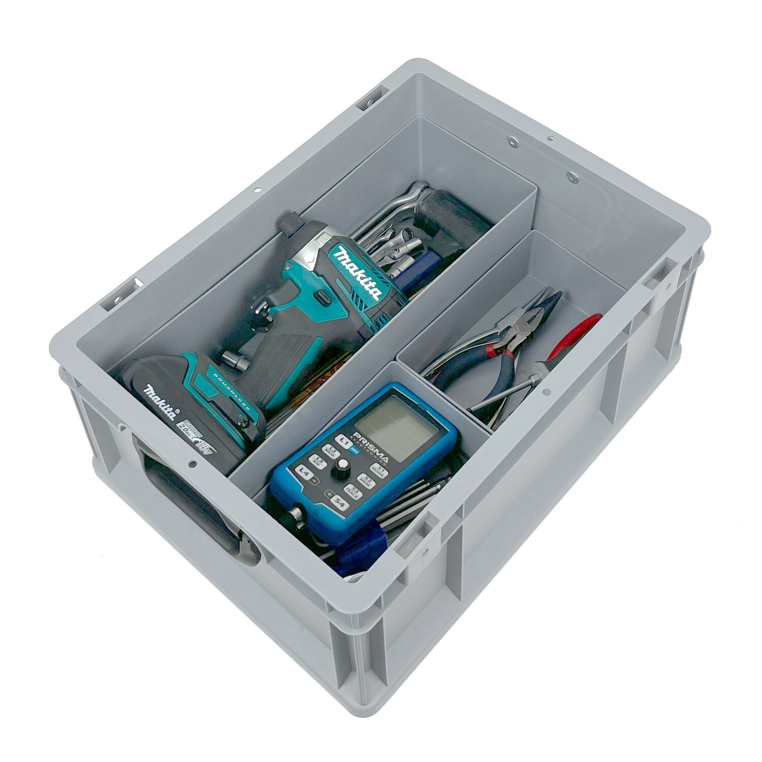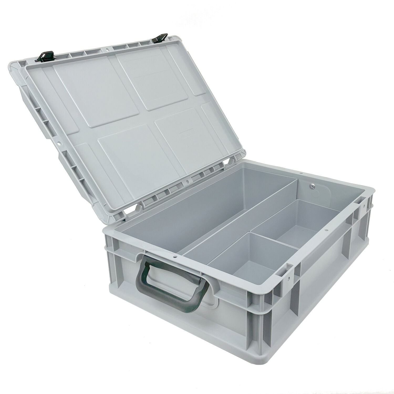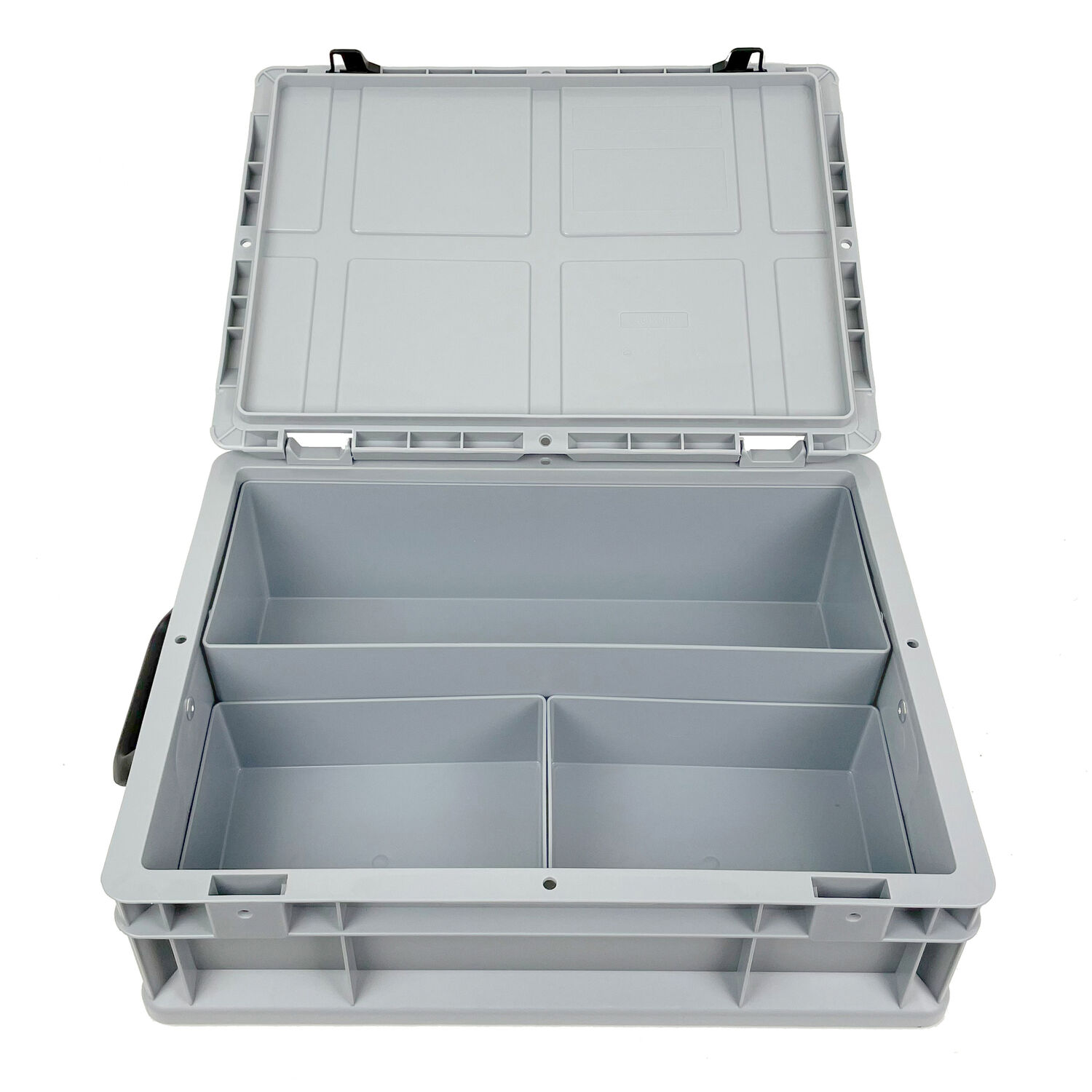 Eurobox NextGen Portable X2 40x30x12 cm med bärhandtag på kortsidorna*, inkl fack. Välj mellan ett lång och två korta fack, alternativt två långa fack. En modern, flexibel och prisvärd Euroback av högsta kvalitet!