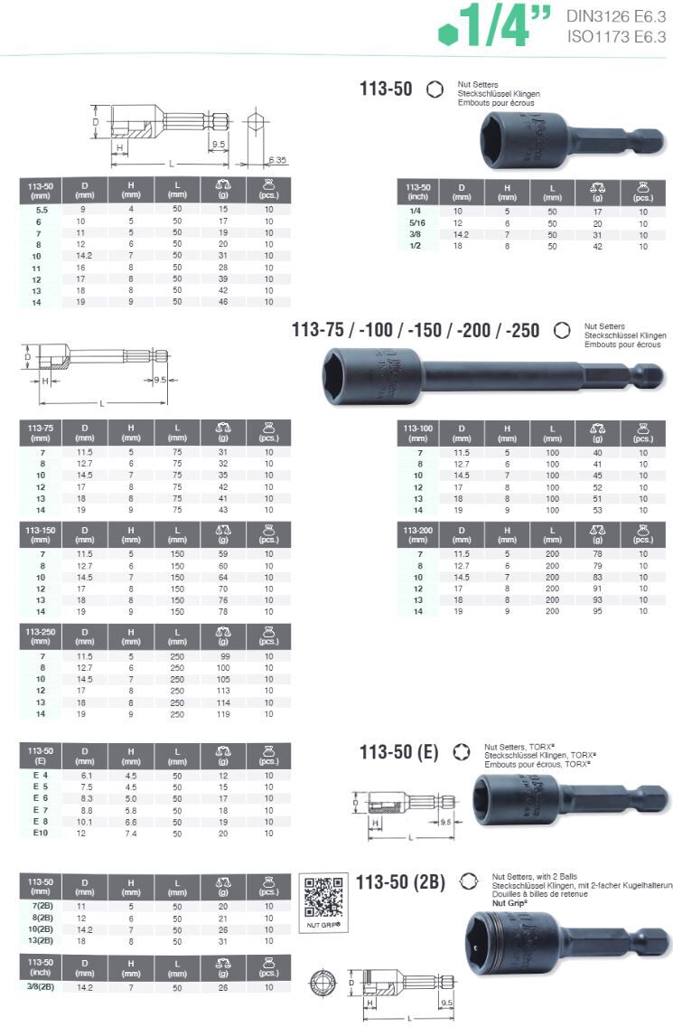 Verktygsfäste: Hex 1/4" (6,35 mm) "Bitsfäste". DIN3126 E6.3 / ISO1173 E6.3