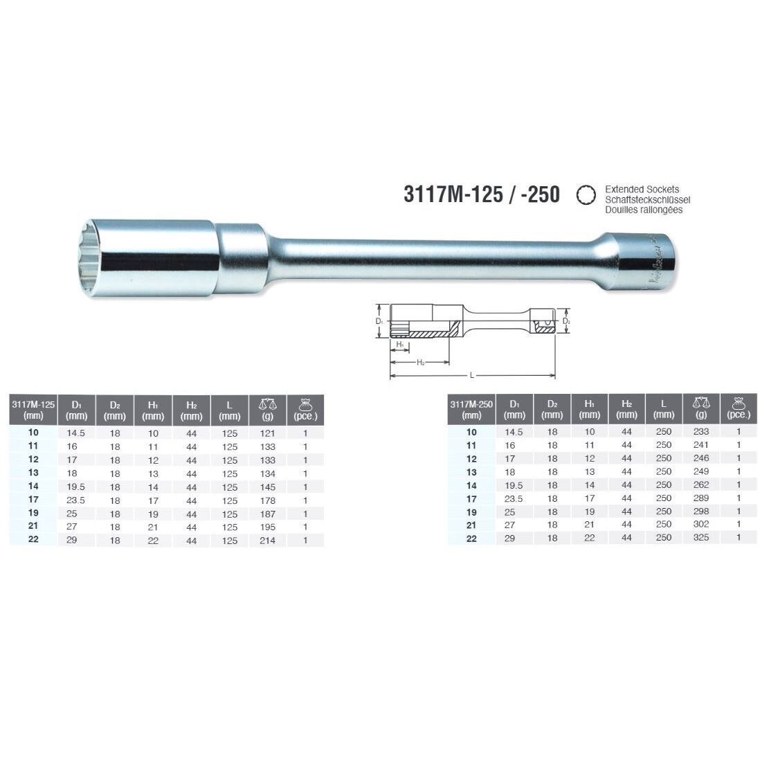 Djup hylsa med långt skaft underlättar på svåråtkomliga ställen och når t.ex. bakhjulsmutter i gokartfälgar. För mutterdragare, spärrskaft eller andra handverktyg med 3/8" fyrkantsfäste.
