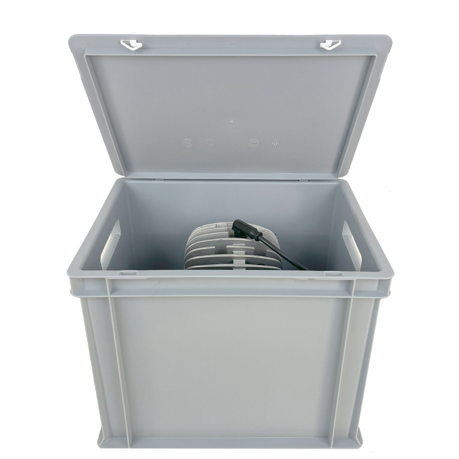 Euroback Premium Std 40x30x32 cm med förslutna grepp*, inkl gångjärnslock med snäpplås. En stabil, stapelbar plastback av hög industriell kvalitet med standardiserat EU-mått.
