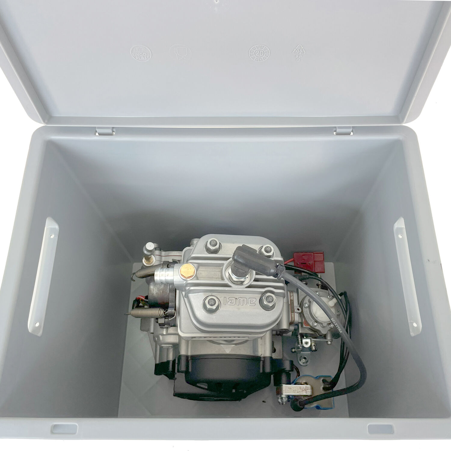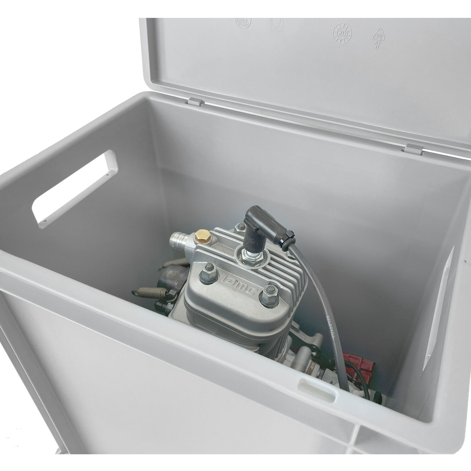Lådan rymmer en 125cc inkl motorfäste och stift.