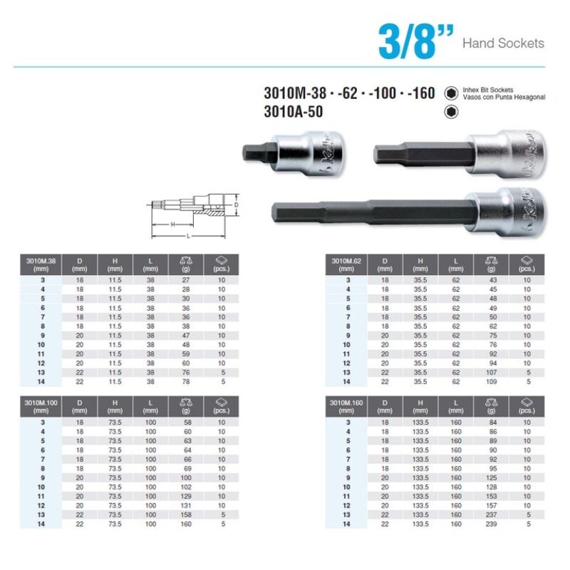 3/8" är storleken under 1/2" och är det bästa valet för kartmekaniker då dessa är smidigare och ger optimalt vridmoment.