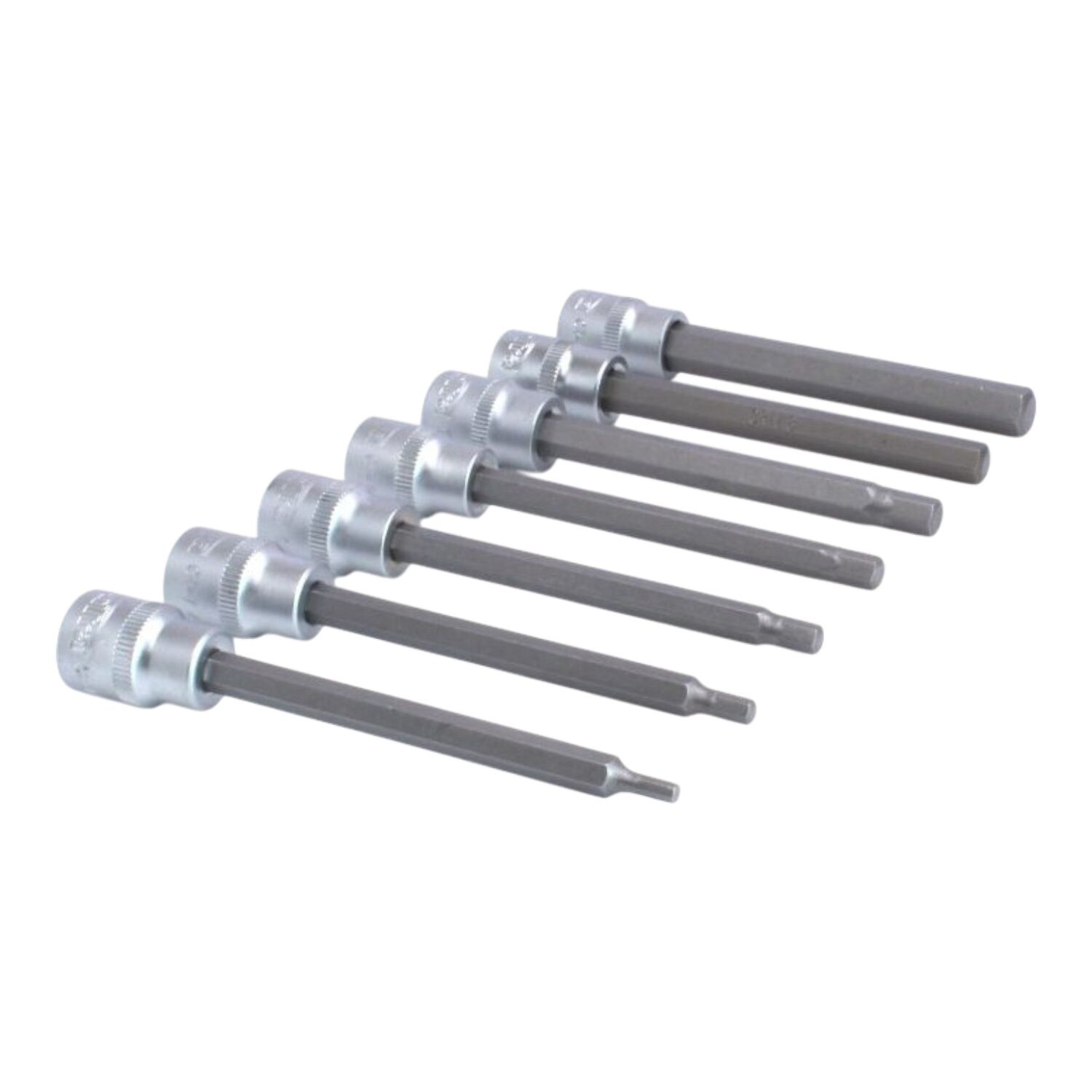 Sats innehållande 7 st långa insexhylsor med 3/8" fyrkantsfäste - perfekt för mutterdragare eller spärrskaft. 3/8" är den optimala storleken för karting!