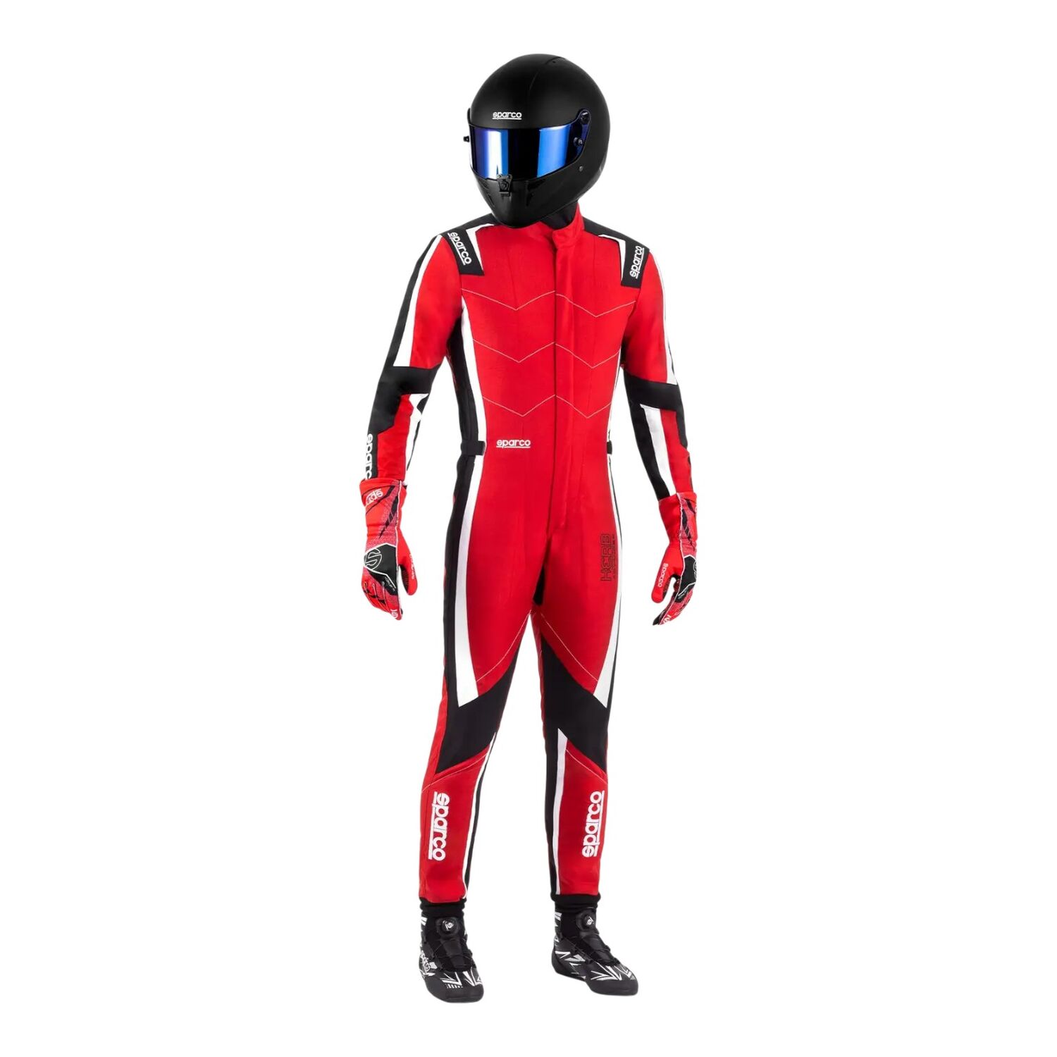 Sparco Kerb Advanced, en mjuk och följsam kartoverall med FIA 8877-homologering. Designad för hög komfort, rörelsefrihet och god ventilation.
