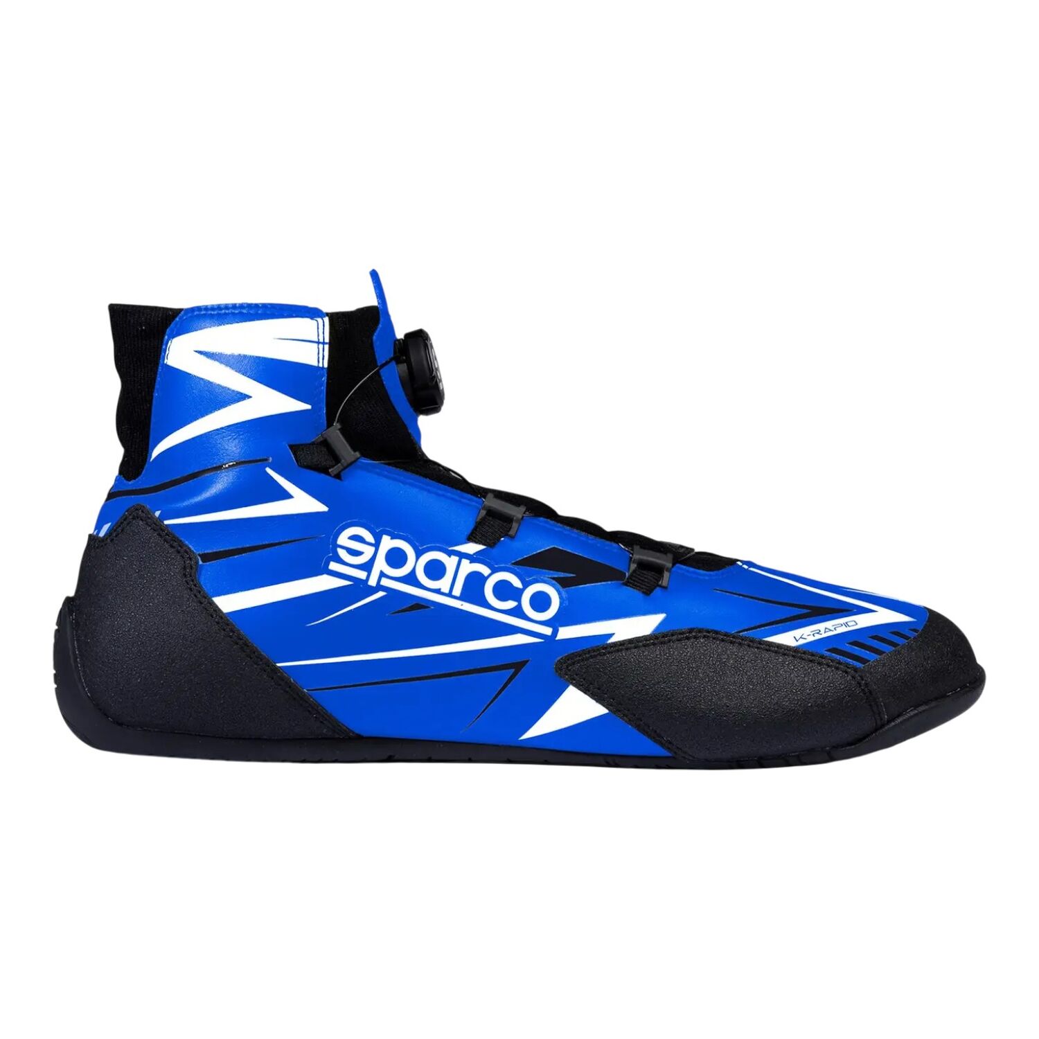 Sparco K-Rapid kartingskor, en lätt, ventilerad och följsam sko med rotor för snabbsnörning. FIA-homologerad.
