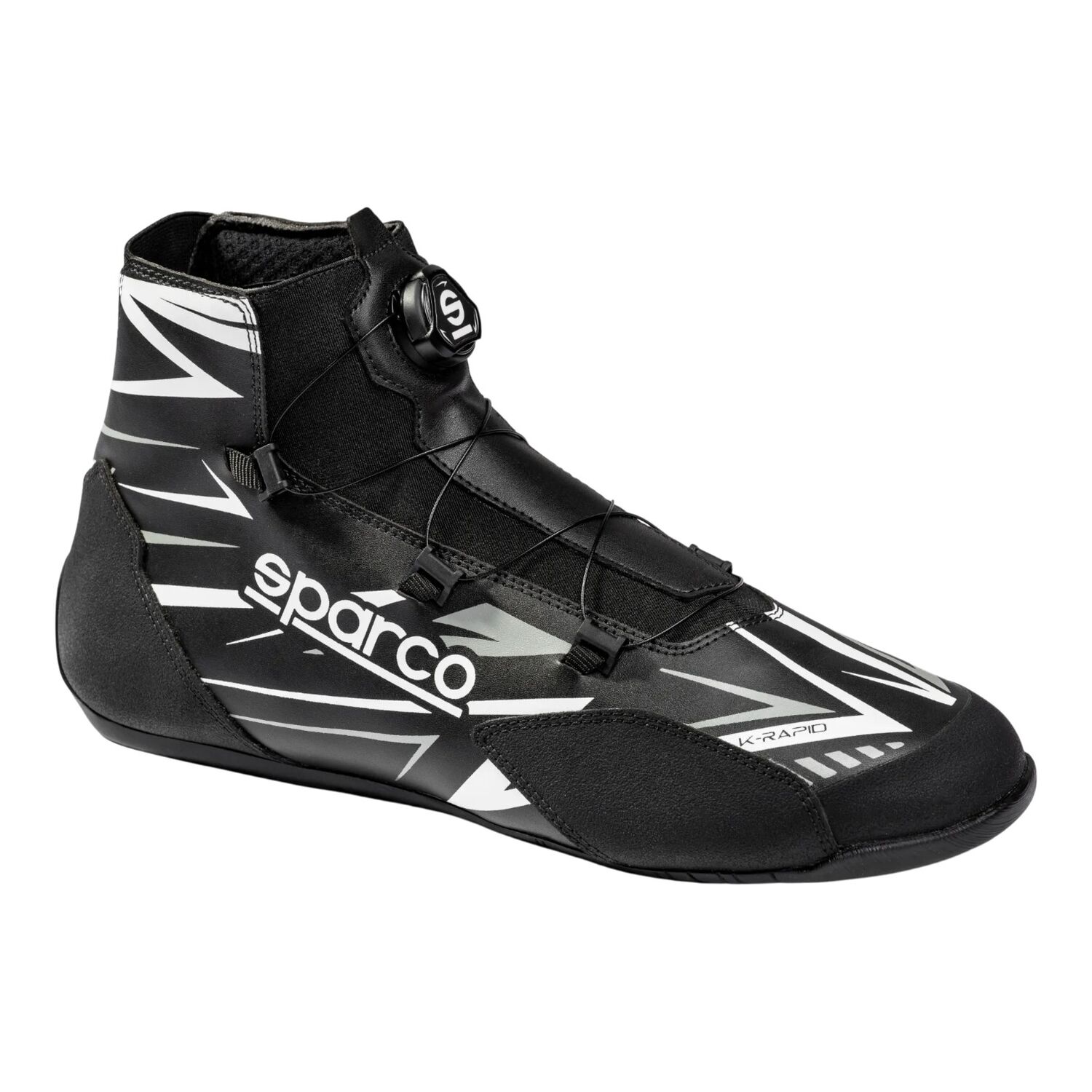 Sparco K-Rapid Waterproof är en vattentät, FIA-godkänd kartingsko med Rotor-snörning och greppsäker sula för torr komfort och stabil känsla även i regn.