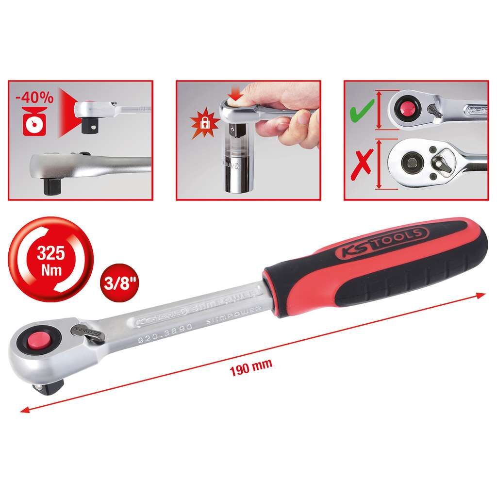 KS SlimPOWER Spärrskaft 3/8” 72T, 190mm